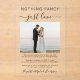 Élégant elopement en acrylique clair ou faire-part mariage privé et invitation décontractée à la réception avec votre photo et "Nothing Fancy Just Love" dans un mélange de typographie simple et un script élégant avec des swashes. Sous votre photo, personnalisez vos détails et ajoutez vos noms dans un script signature.