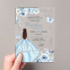 Bleu clair et Argent Floral Princesse Quinceañera Acrylique Invitations, Elégant Bleu Doux Beige Mis Quince Anos Invitacion