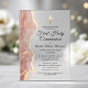 Une très belle élégante invitation de la Première Sainte Communion conçue avec un motif doux rose et or agate. Imprimée sur acrylique de qualité supérieure, cette invitation offre une touche moderne et luxueuse. Les tons roses doux et les tons dorés chatoyants créent un look raffiné et sophistiqué, ce qui en fait le choix idéal pour la célébration de la première sainte communion d’une jeune fille.