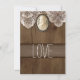 Broche vintage de camée de pays rustique aux invitations de mariage de dentelle avec un arrière - plan de bois de grange. Ce faire-part de mariage unique va voir antique vintage à lui. Le faire-part de mariage a de divers styles de police lui faire une conception unique de typographie. Le dos a également le bois, la dentelle, et la conception rustiques de broche de camée avec le mot "AMOUR". Changez le texte témoin sur le modèle en votre propre libellé de faire-part de mariage.