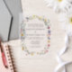 Élevez votre faire-part mariage avec nos élégantes invitations à un mariage floral, mettant en valeur vos détails mariages encadrés par un enchanteur arrangement ovale de fleurs sauvages d'aquarelle et feuillage luxuriant dans des tons vifs de rose, jaune, violet, bleu et vert. Contre un arrière - plan de vellum, ces invitations de mariage fleurs sauvages rustiques allient charme et raffinement, ce qui en fait un choix idéal pour les mariages du printemps et de l'été. Personnalisez ces invitations exquises pour refléter votre style unique et créer une impression durable pour votre journée spéciale.