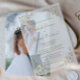 Cette élégante faire-part de mariage en vellum d'inspiration vintage présente le texte en écriture dorée et les polices serif, encadrées par un délicat motif vintage de vigne dorée. (La couche inférieure du carte photo, vendue séparément, est disponible dans la collection ci-dessous.)
