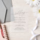 Présentant une faire-part de mariage qui respire le raffinement et l'esprit moderne, notre Elegant Modern Script Vellum Invitations est l'incarnation de l'amour contemporain. Ces créations de velours éthérées sont ornées d'un script complexe qui danse avec grâce à travers le papier délicat et translucide, jetant une douce et chaude lueur sur chaque mot. La texture subtile du vellum ajoute une dimension luxueuse à l'invitation, ce qui en fait un souvenir inoubliable pour vos invités.