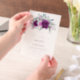Ces invitations allient charme rustique et élégance moderne, parfait pour une célébration mariage sophistiquée mais naturelle. Le design se compose d'une belle palette de tons violets profonds et doux et d'une forme de losange géométrique frappante qui ajoute une touche contemporaine. Les délicats accents floraux, associés à la superposition unique de vellum, créent un aspect stratifié et éthérée. Parfait pour les couples à la recherche d'une invitation unique qui équilibre la chaleur rustique avec un design moderne et des détails luxueux.