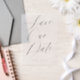 Simple élégant mariage chic noir et blanc superposition mariage personnalisé enregistrer la date typographie script carte papier vellum. Il peut être jumelé avec une carte séparée avec une photo et d'autres détails. Veuillez consulter la collection pour plus d'idées.