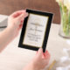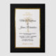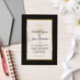 Invitation vos invités pour vous aider à célébrer votre journée spéciale avec cette élégante invitation avec script moderne, texte noir et or y compris un palmier artistique et cadre en feuille d'or faux métallique avec une bordure noire.