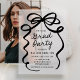 Célébrez votre diplômé en style avec cette invitation de remise de diplômes Modern Elegant Black Bow! Conçu avec un arc noir audacieux encadrant gracieusement les détails de la fête sur un arrière - plan de vellum pur, cette invitation exhale une sophistication intemporelle. La police de caractères noire tendance ajoute une touche chic et moderne, ce qui en fait le choix idéal pour les fêtes de fin d'études secondaires et collégiales. Elevez votre événement avec cette invitation élégante et élégante !