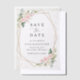 Invitations amis et famille dans le style et donner le ton pour votre journée spéciale avec ce charmant enregistrer la carte de date. Le design présente des fleurs d'aquarelle rose et blanche, de la verdure, des confettis dorés et un cadre doré.
