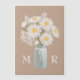 La simplicité d'un bouquet de marguerites blanches dans un bocal en maçon crée un design mariage élégant mais minimaliste. Initiales personnalisables.