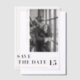 Annoncez votre journée spéciale avec ces photos noir moderne enregistrer les invitations date vellum. Présentant un design élégant avec une typographie audacieuse et un espace pour votre photo préférée, ces invitations sont parfaites pour les couples contemporains. Le revêtement en velours translucide apporte une touche d'élégance, ce qui en fait un choix élégant pour n'importe quel thème mariage.