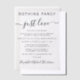 Célébrez votre amour dans le style avec nos invitations chic mariage vellum, parfait pour annoncer votre événement ou mariage privé à des amis et à la famille et pour les invitations à une célébration décontractée. Avec l'expression "Nothing Fancy Just Love" dans un mélange d'un élégant script de calligraphie avec des swashes et une typographie moderne propre, ces invitations sont magnifiquement personnalisées avec votre faire-part de mariage, invitation de mariage et vos noms dans un élégant script signature. Associez-le à votre photo préférée ou à l'un de nos arrière - plans stocks coordonnés en couleur ou en carte photo pour une combinaison sophistiquée et intemporelle (voir nos Arrière - plans pour Collections superposées de Vellum ou envoyez-nous un message pour les liens).