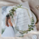 Cette élégante faire-part de mariage rustique en velours présente un cadre géométrique en faux feuille d'or décoré de verdure d'eucalyptus. Le mot "mariage" apparaît dans le script calligraphique. Customisez le texte gris charbon de bois avec les noms de la mariée et du marié et les détails du mariage. (La couche inférieure du carte photo, vendue séparément, est disponible dans la collection ci-dessous.)