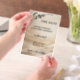 Mariage élégant en vellum Enregistrer la superposition Date avec un texte de script sur une parties scintillant d'or brillant (imprimé) design. Veuillez noter qu'il ne s'agit que de la superposition, l'invitation de l'arrière - plan (ou votre photo personnalisée) doit être achetée séparément.