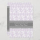 Invitations personnalisées de baby shower dans le motif vintage en pastel léger élégant et moderne de damassé florale classique de pourpre de lavande, grise et blanche. Personnalisable avec votre texte, contactez-nous pour demander un changement de couleur.