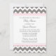 Invitations personnalisées de baby shower dans des roses pâles légères élégantes et modernes, le gris de charbon de bois foncé et le motif de zigzags de chevron d'amusement de blanc. Personnalisable avec votre texte, contactez-nous pour demander un changement de couleur.