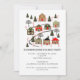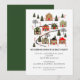 Invitations de fête de Noël avec village de Noël de maisons décorées pour n'importe quel quartier ou fête de famille.