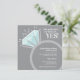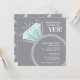 Invitation vos amis et votre famille à une fête de fiançailles ou à un dîner fiançailles avec ces invitations grises, aqua et blanc, graphique bague fiançailles diamant. Personnalisé avec vos propres mots de célébration, date et lieu. Autres articles correspondants disponibles. Art graphique et design original par www.mylittleeden.com sur zazzle.