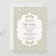 Et beau les invitations nuptiales de douche inspirées par Marocain français élégant avec une répétition légère pâlissent la conception géométrique verte en bon état de motif de jade et d'or et les flourishes floraux hued d'or. Cet invitation classieux et luxe est parfait pour la douche nuptiale orientée de mille et une nuits formels, exotiques, marocains, ou d'Aladdin. Le dos des ces coutume, invitations de fantaisie de cadre et annonces peut être personnalisé avec bientôt pour être le monogramme de la jeune mariée et le nom d'événement sur la forme de quatrefoil et la conception imprimée de regard de ruban. Illustration et © Chrissy H. Studios, LLC de conception. Tous droits réservés.