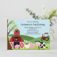 Commencez votre partie d'anniversaire de enfant outre de la droite avec notre invitation douce d'anniversaire de enfant d'animaux de ferme comportant une vache, un porc, une rôtissoire, des moutons, un tracteur de grange et un poussin de bébé. Mignon pour une première fête d'anniversaire de filles ou la première fête d'anniversaire de garçons. Visitez notre magasin pour regarder d'autres invitations mignonnes de fête d'anniversaire et en assortissant merci des notes, des autocollants et des timbres-poste. Conceptions de Babystar de ©