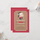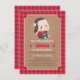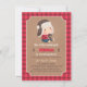 Cette invitation mignonne vient dans une palette de couleur de des tonalités brunes et rouges. Elle fait habiller un bébé dans de mini vêtements de bûcheron de casquette brun de trappeur, de chemise de plaid rouge, de bretelles et de pantalon de bleu de denim. Il se tient dessus sur un ours de nounours adorable de brun foncé. Silhouette d'arbre de région boisée pour accentuer le nom de l'enfant. Motif rouge de plaid pour l'arrière - plan. Personnalisez facilement avec vos détails de partie dans l'espace fourni.