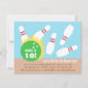 Une invitation moderne, minimaliste et chique de fête d'anniversaire de bowling pour des enfants plus âgés et des ados qui préfèrent une plus petite partie avec des amis intimes au-dessus d'un jeu de bowling d'amusement ! Il a une boule de bowling verte faire une grève contre les goupilles de bowling rouges et blanches et leur envoyer le vol ! Personnalisez facilement avec des détails de partie comprenant la boule de bowling.