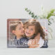 Un design simple et moderne, qui s'apparente à merveille avec votre photo, dispose d'un cadre de bordure blanc avec du texte qui lit Joyeux et Lumineux avec une zone que vous pouvez facilement ajouter vos noms. Le dos est un motif en diamant gris et blanc. Photographie © Storytree Studios, Stanford, CA