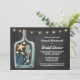 Invitations nautiques de douche nuptiale Chalkboard - présente un arrière - plan imprimé de tableau noir avec une bouteille nautique remplie sera hippocampes, étoiles de mer, coquillages et corail. La conception comporte également des lampes à cordes en haut.