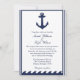 Invitations nautiques de mariage de bleu marine et de blanc - la conception avant est comportée d'une ancre, corde, et sur les ressacs inférieurs. Les conceptions, le texte, et les contours est dans le bleu marine avec un arrière - plan blanc. Sur le dos est une plus grande ancre et une frontière blanche sur un arrière - plan de bleu marine. Le papier par défaut est placé au stock de base d'invitation, mais peut être changé en cliquant sur "choisissent votre style" alors utilisant le de papier laissent tomber vers le bas la sélection une de boîte des options. Chaque invitation vient avec une enveloppe blanche. Pour changer la police, la taille de la police, ou la couleur de police, cliquent sur le bouton de personnaliser au-dessous du faire-part de mariage nautique. Note vous pouvez devoir la customiser si certains mots sont trop longs et ainsi ils adaptent la conception mieux. Si votre satisfaisant avec l'installation de police, vous peut employer la caractéristique de personnalisation pour changer l'information de démonstration en vos détails personnels. Cliquer sur les petites images de l'avant/arrière de la carte avec le changement à ce côté ainsi à lui peut être changé. Une fois fait le contrôle l'information que vous vous êtes appliquée est correct et cela vous n'avez aucune erreur d'orthographe des deux côtés de la carte.