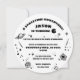 Unique, amusant, moderne et audacieux anniversaire astronaute aventure spatiale unique photo personnalisée conception d'invitation fête d'anniversaire photo. Une illustration audacieuse d'un casque d'astronaute est déplacée à l'avant de l'invitation spatiale ronde. Nous avons créé ce casque spatial astronaute personnalisé unique dans lequel vous placez votre photo de récipiendaire d'anniversaire pour créer l'apparence qu'ils portent le casque spatial d'un astronaute ! La palette de couleurs noir et blanc est utilisée pour créer un thème simple mais audacieux et accrocheur de l'espace de célébration d'anniversaire thème design. La couleur dominante noire est utilisée pour représenter l'espace extérieur profond. Des dessins animés amusants illustrant des fusées spatiales, des étoiles spatiales, des météores, des étoiles tournantes, des astronautes et des planètes spatiales sont incorporés dans cette audace amusante de cette conception d'anniversaire d'aventure spatiale mondiale.