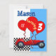 Créez votre invitation! Voiture rouge avec bleu clair et drapeau à damiers. . Facile à customiser ! Cliquez simplement sur "customiser plus loin" pour ajouter du texte, des couleurs et des images !