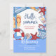 Une invitation sur le thème de l'été avec des éléments de plage en rouge, blanc et bleu. Présentée comme une invitation pour un enterrement de vie de jeune fille, elle est parfaite pour toutes les célébrations estivales. (<a href='https://www.freepik.com/free-vector/hellos-summer-background-with-quote_1168985.htm'>Conçu par Freepik</a>). <br/><br/>La carte est facile à personnaliser avec votre texte, police, couleur de police, options de forme de papier et choix parmi six types de papier.<br/><br/>Pas exactement ce que vous recherchez ? Tous nos produits peuvent être conçus sur mesure pour répondre à vos besoins sans frais supplémentaires.<br/><br/>Contactez-nous simplement à heartfelthelper@gmail.com.<br/><br/>Produits coordonnés disponibles : Demandez-nous !