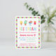 Battez la chaleur estivale avec une soirée d'été cool glaces ! Le design comprend une glace au cône avec des arômes d'arc-en-ciel, une crème glacée à la crème glacée à la crème douce, un soleil avec cerise et gaufre et un popsicle avec des morceaux de crème et de chocolat. Même plaquette de couleur utilisée comme bandes pour la bordure. Invitation gaie et lumineuse, idéale pour les fêtes d'anniversaire des enfants, les soirées de billard et les jardins !