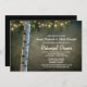 Invitations pour le dîner Rustic Birch Tree Rehearsal - présente un arrière - plan vintage avec un bouleau et des lampes à cordes.