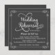 Invitations de soirée avant-mariage en carton rouge rustique avec calligraphie de style lasso et typographie simple de la craie et parchemins tourbillonnant et élégants sur tableau noir gris ardoise. Ajoutez les noms et les informations mariages dans ce modèle facile à utiliser. Les invitations au tableau noir de style rétro sont parfaites pour les mariages modernes branchés avec une touche amusante de charme sophistiqué de style ouest/sud pour les mariées traditionnelles et mariées à des prix abordables pour les épouses à petit prix.