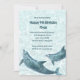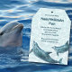 Invitations de fête d'anniversaire de dauphin pour garçons ou filles. Les dauphins nagent dans une image d'eau arrière - plan devant et derrière cette invitation en forme de tag. Customisez le texte pour la fête d'anniversaire d'un fils ou d'une fille. Le design fonctionne également pour une fête de piscine d'été. Choisissez l'option de téléchargement instantané à partager en ligne, ou la version imprimée sous forme de balise, ou autre.
