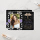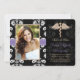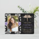 Ajoutez votre image de photo ou de favori à ces annonces florales noires et blanches élégantes et formelles d'obtention du diplôme d'école de vétérinaire de damassé et invitations vétérinaires d'obtention du diplôme avec un caducée simple de serpent d'or et une conception imprimée de regard de ruban piquée par pourpre de lavande pour le vétérinaire de graduation. Customisez-le pour dire celui que vous vouliez sur l'arrière et avant de ces annonces et invitations d'obtention du diplôme de diplômé d'art dentaire. © Chrissy H. Studios, LLC d'illustration. Tous droits réservés.