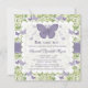 Ajoutez la jeune mariée pour être initial ou monogramme sur des ces les invitations nuptiales de douche de jolie lavande et de papillon pourpre vert avec un arrière - plan de damassé de vert de ressort et une frontière et des coeurs crantés. Personnalisez le dos de l'invitation avec le nom de la jeune mariée ou quelque texte vous voulez. Concevez le © Chrissy H. Studios, LLC. Tous droits réservés.