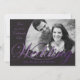 Invitations pourpres et noires chiques et élégantes de mariage avec la photo du couple sur l'avant et examinée sur le dos. Pour la photo arrière, n'importe quelle image noire et blanche examinera plus foncé que l'avant. (Note : la même image de l'image B&W a été employée dans l'échantillon sur l'avant et de nouveau à l'effet de ternissure d'exposition.) Si vous aimez le style, mais voulez que les différentes couleurs assortissent votre mariage, l'email aaronsgraphics1@gmail.com et moi téléchargera un dans les couleurs que vous avez besoin ! Voir le mon magasin de zazzle pour des options actuelles de couleur. Félicitations sur votre mariage prochain !