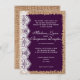 invitations de mariage de toile de jute, invitations d'annonces de mariage de toile de jute, de toile de jute et de mariage de dentelle, invitations pourpres de mariage, invitations de mariage campagnard, invitations rustiques de mariage, invitations vintages de mariage, invitations occidentales de mariage de pays