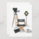 Fantaisie vous-même en tant que cinéaste. Jaillissent cette conception est parfaite pour vous. Elle est d'un ensemble de cinéaste. L'ensemble a la chaise de cinéaste, l'appareil-photo, les lumières, le conseil de scène et d'autres appui verticaux. Tous prêts à commencer à filmer le film. Cette scénographie de cinéaste semble grande à ces invitations