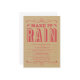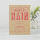 Amusant rétro invitation bébé douche avec le titre "faire il pluie". Le design est rose framboise sur un arrière - plan de texture en carton brun clair.