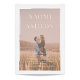 Un faire-part de mariage photo moderne avec une bordure de style pinceau blanc et typographie traditionnelle élégante.