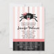 Ces invitations mignonnes de baby shower d'araignée sont plus douces qu'éffrayantes. Une araignée de bébé avec une tétine dans sa bouche et un arc rose sur sa tête se laisse tomber vers le bas du dessus de cet invitation rayé rose et noir et blanc de baby shower de Halloween. © Chrissy H. Studios, LLC d'illustration. Tous droits réservés.