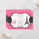 Commencez-vous fête d'anniversaire de fille outre de la droite avec notre caniche rose élégant et chic et invitations françaises de partie d'anniversaire de enfant de Tour Eiffel. Notre caniche rose mignon dans l'invitation de Paris comporte un petit caniche rose mignon avec Tour Eiffel de Paris entouré avec un cadre de fantaisie réglé sur un arrière - plan rose foncé avec une bande noire et blanche de point de polka. L'invitation de fête d'anniversaire de filles de caniche comporte un dos coordonné. Visitez notre magasin pour assortir vous remercient des cartes de note, autocollants d'anniversaire, merci des autocollants et des timbres-poste. Conceptions de Babystar de ©