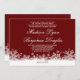 Invitations rouges et blanches de flocon de neige d'hiver de mariage pour un hiver ou un mariage de Noël. Caractéristiques de conception ce un arrière - plan rouge foncé avec des flocons de neige et neige sur le rebord inférieur. Ces annonces de mariage d'hiver sont parfaites pour un mariage d'hiver. Le dos a le mêmes arrière - plan et conception rouges de flocon de neige.