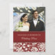 Invitations faites sur commande de photo de mariage de renouvellement élégant de voeu en rouge et outre du motif floral crème blanc de damassé avec le texte entièrement personnalisable d'inclure vos détails de cérémonie de renouvellement de voeu.