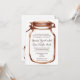 Ces invitations rustiques de mariage ont une conception vintage de pot de maçon pour un mariage de style campagnard. Le postérieur de l'invitation de mariage campagnard a un petit pot de maçon dans le coin inférieur avec le mot "amour" en manuscrit. Ajoutez juste votre propre faire-part de mariage exprimant à ce modèle d'invitation de mariage campagnard.