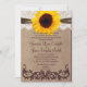 Ce faire-part rustique de mariage de tournesol de pays est parfait pour un mariage de style campagnard ou le mariage de grange. L'arrière - plan est une copie de papier vintage affligée avec un regard légèrement texturisé. Il a une copie florale fleurie de rouleau de vigne au fond de l'invitation. Le dessus de l'invitation comporte un tournesol jaune lumineux sur la dentelle imprimée et la conception imprimée de ruban de ficelle. Il a le regard d'une invitation posée liée par la ficelle, toutefois c'est juste une invitation imprimée par appartement de vous sauver argent. Qui ne veut pas des invitations de mariage de remise, droite ? Ces invitations rustiques de mariage de tournesol sont parfaites pour des mariages campagnards, des mariages de grange, des mariages de ferme, des mariages de cowboy, des mariages rustiques, et n'importe qui qui emploient des tournesols en leur bouquet de mariage ou décor de réception de mariage.