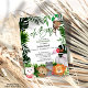 Invitations de douches bébé Safari Little Wild One Safari avec girafe animaux zoo, lion, tigre Wild une invitation de fête safari. Célébrez l'arrivée prochaine de votre petit groupe de joie avec cette invitation fantaisiste au baby shower sur le thème du safari. Le design comprend un groupe d'adorables animaux de la jungle et des feuilles rustiques de verdure tropicale.