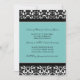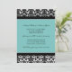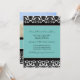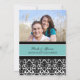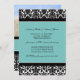 Invitations de photo de partie de fiançailles dans le bleu de turquoise élégant, motif floral classique noir et blanc de damassé. Entièrement personnalisable avec vos détails de partie de fiançailles et votre propre photo. En outre disponible dans un éventail d'assortir des produits de mariage.